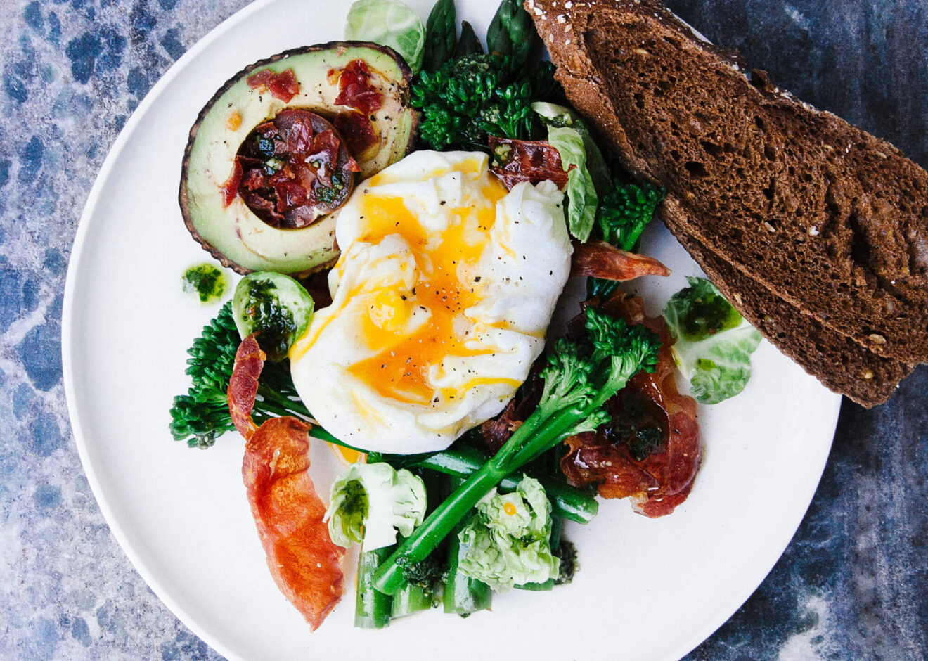 Fried egg and avocado breakfast plate