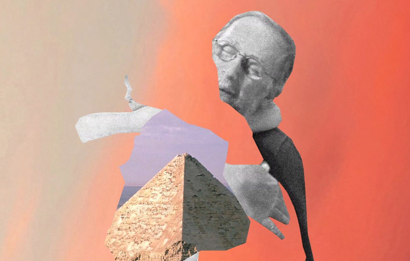 A surreal collage blends history with modern views, creating an artistic landscape where past and present converge in unexpected ways.